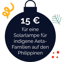 Unsere Projektpartner vor Ort haben uns erzählt, welche Spenden ihnen zu Weihnachten eine besondere Freude machen würden. Mit einer 15 Euro-Spende schenken Sie einer indigenen Aeta-Familie auf den Philippinen eine Solarlampe, mit 20 Euro ermöglichen Sie einem Kind in Eswatini die Teilnahme an einem Mental-Health-Workshop, und mit 75 Euro unterstützen Sie einen gleichberechtigten Schulstart für ein Schulkind in Deutschland mit einem kompletten Schulranzen-Set.